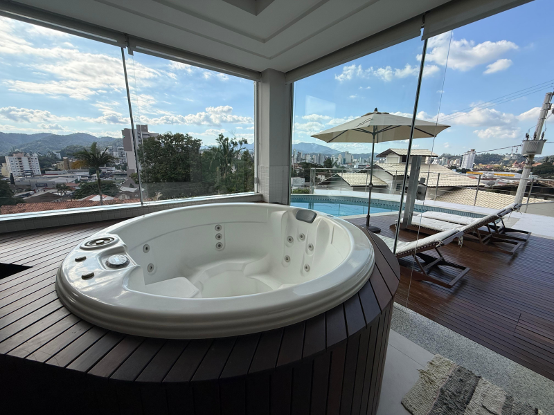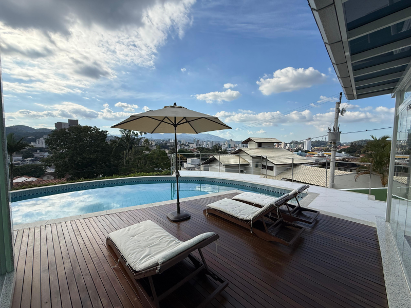 Casa mobiliada com 360m² de área interna em um terreno de 640,55 m², com 3 dormitórios sendo 1 suíte, área de festa com piscina aquecida e 2 vagas cobertas, localizada no Centro, Brusque/SC.