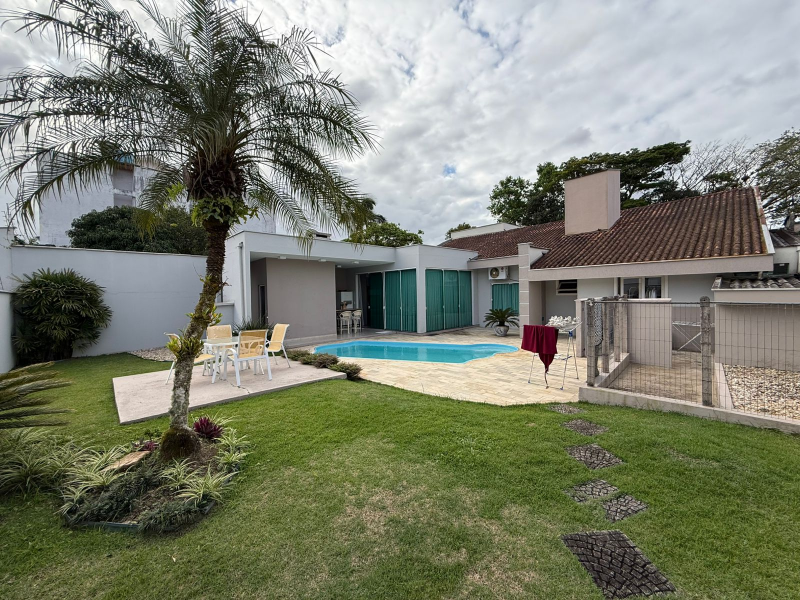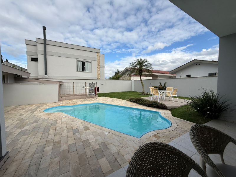 Casa mobiliada com aproximadamente 350m², sendo 2 suítes com closet + 1 quarto, sala de jantar, sala de tv, lavabo, 2 banheiros, área de festas com piscina e garagem coberta para 4 carros, localizada no Bairro Jardim Maluche , Brusque/SC.