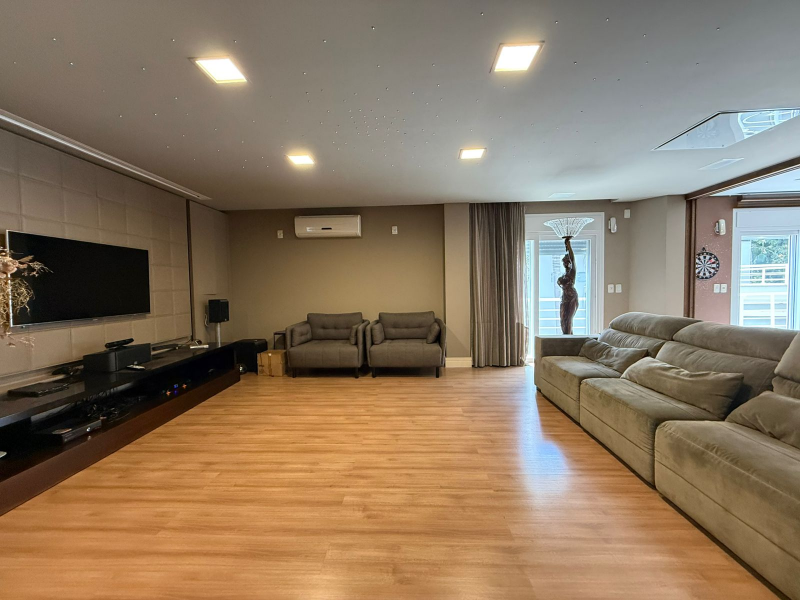 Casa mobiliada com 482,00 m² privativos e terreno com 1.500 m², 3 suítes sendo uma master com closet, 2 lavabos, 3 vagas de garagem, ampla sala de jantar, cinema, área de festas, espaço no jardim, localizada no bairro Jardim Maluche, Brusque/SC.
