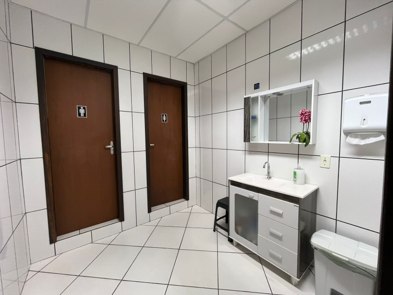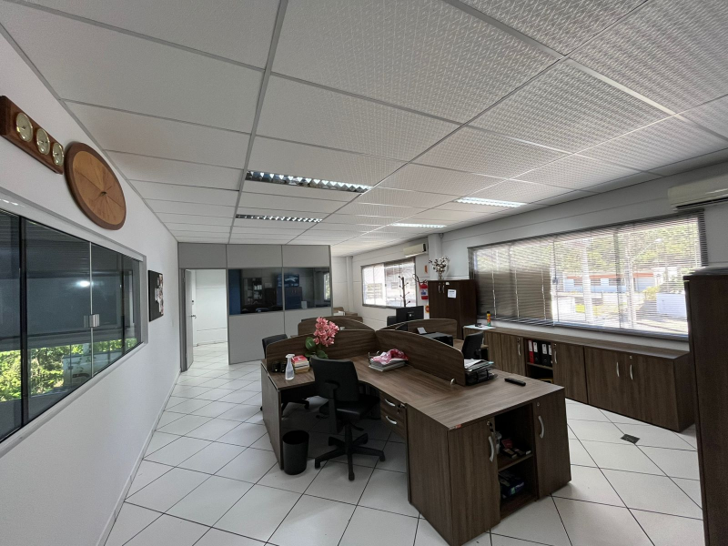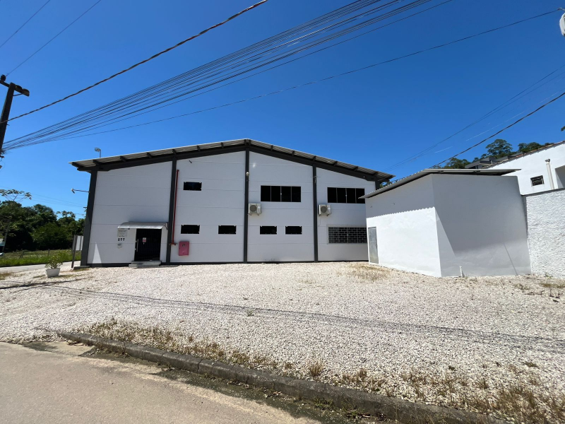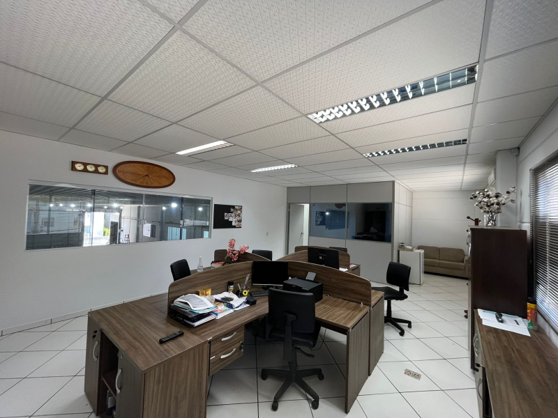 Galpão com 1.233,19m² de área construída em um terreno de 2.559,75 m², localizado no Bairro Rio Branco, Brusque/SC. Possui cozinha, escritório com mobília, banheiros.